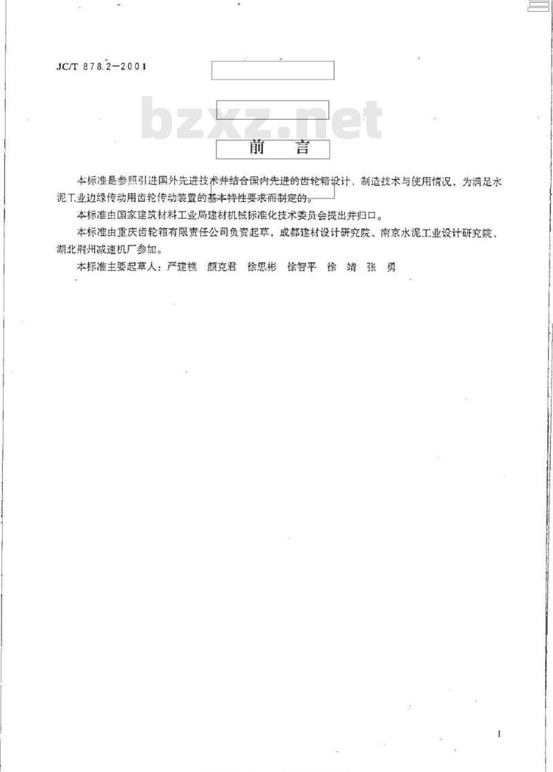 本标准是参照引进国外先进技术并结合国内先进的齿轮箱设计、制造技术与使用情况,为满足水泥工业边缘传动用齿轮传动装置的基本特性要求而制定的。本标准由国家建筑材料工业局建材机械标准化技术委员会提出并归口。本标准由重庆齿轮箱有限责任公司负责起草,成都建材设计研究院、南京水泥工业设计研究院、湖北荆州减速机广参加。