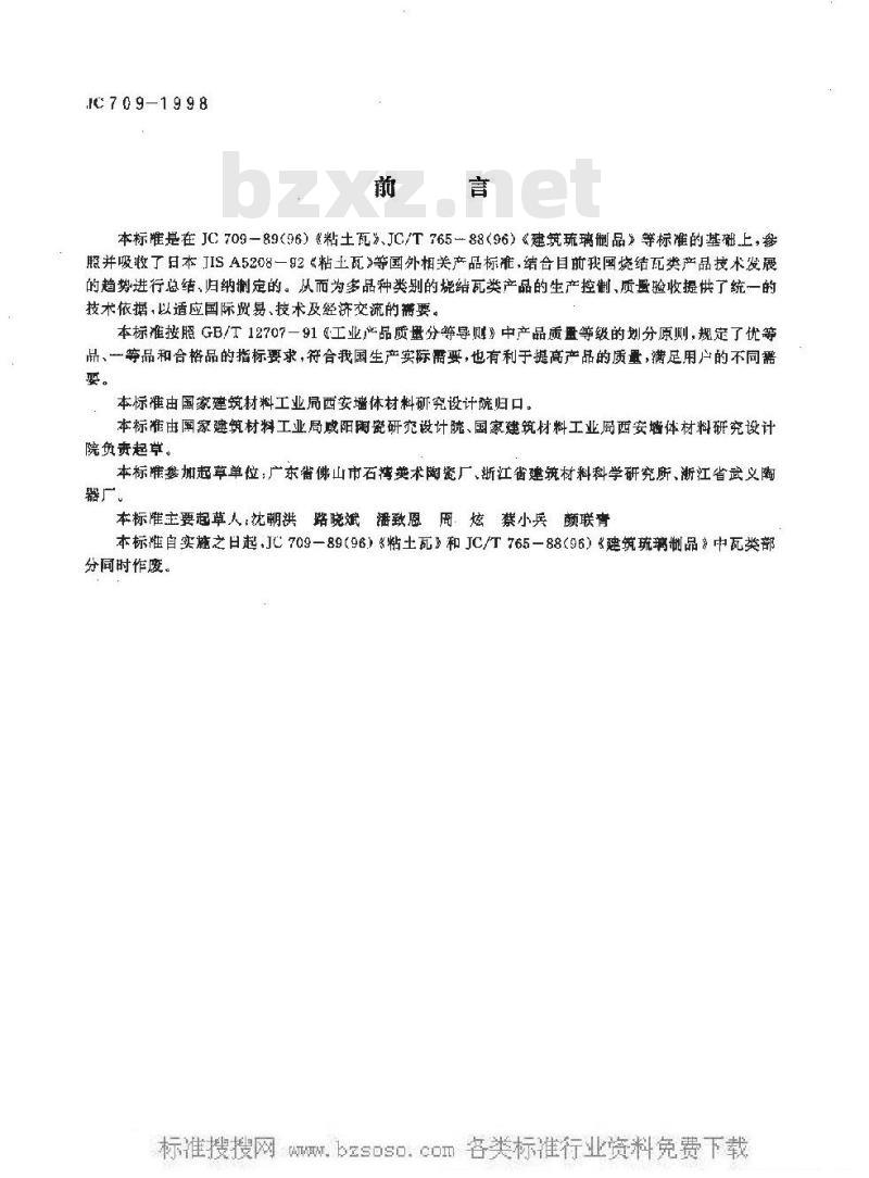 本标惟主要起草人,沈朝洪路晓斌潘致恩周炫蔡小兵颜联青本标雅自实施之日起.JC709-89(96)《粘土瓦》和JC/T765-88(96)建筑琉璃制品》中瓦类部分同时作废。