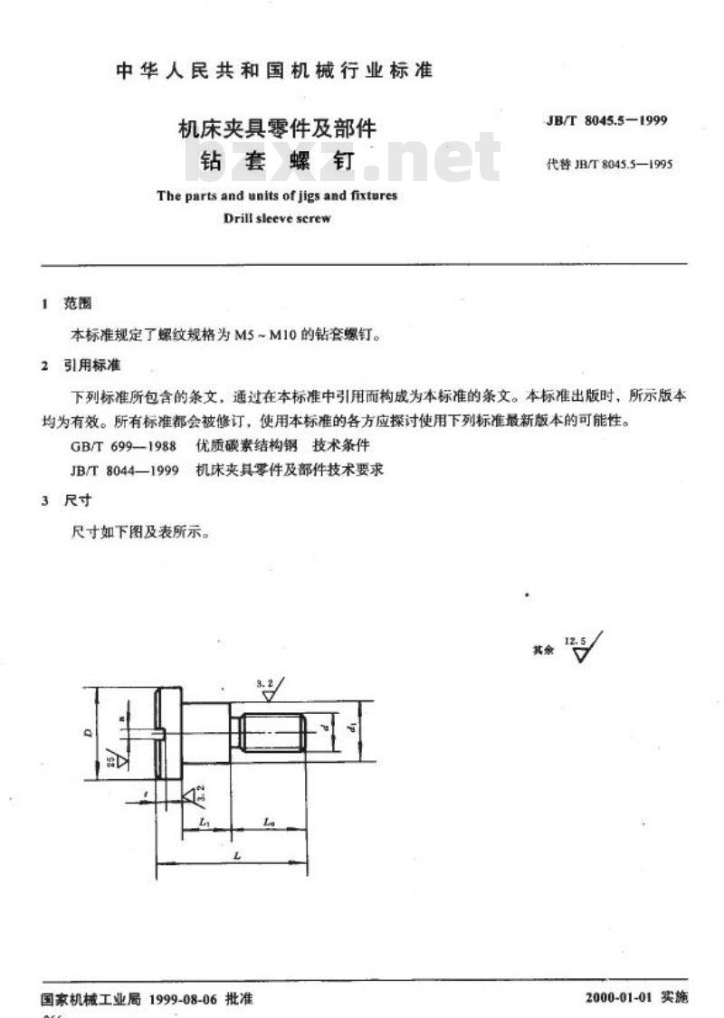 - JB/T 8045.5-1999 机床夹具零件及部件 钻套螺钉