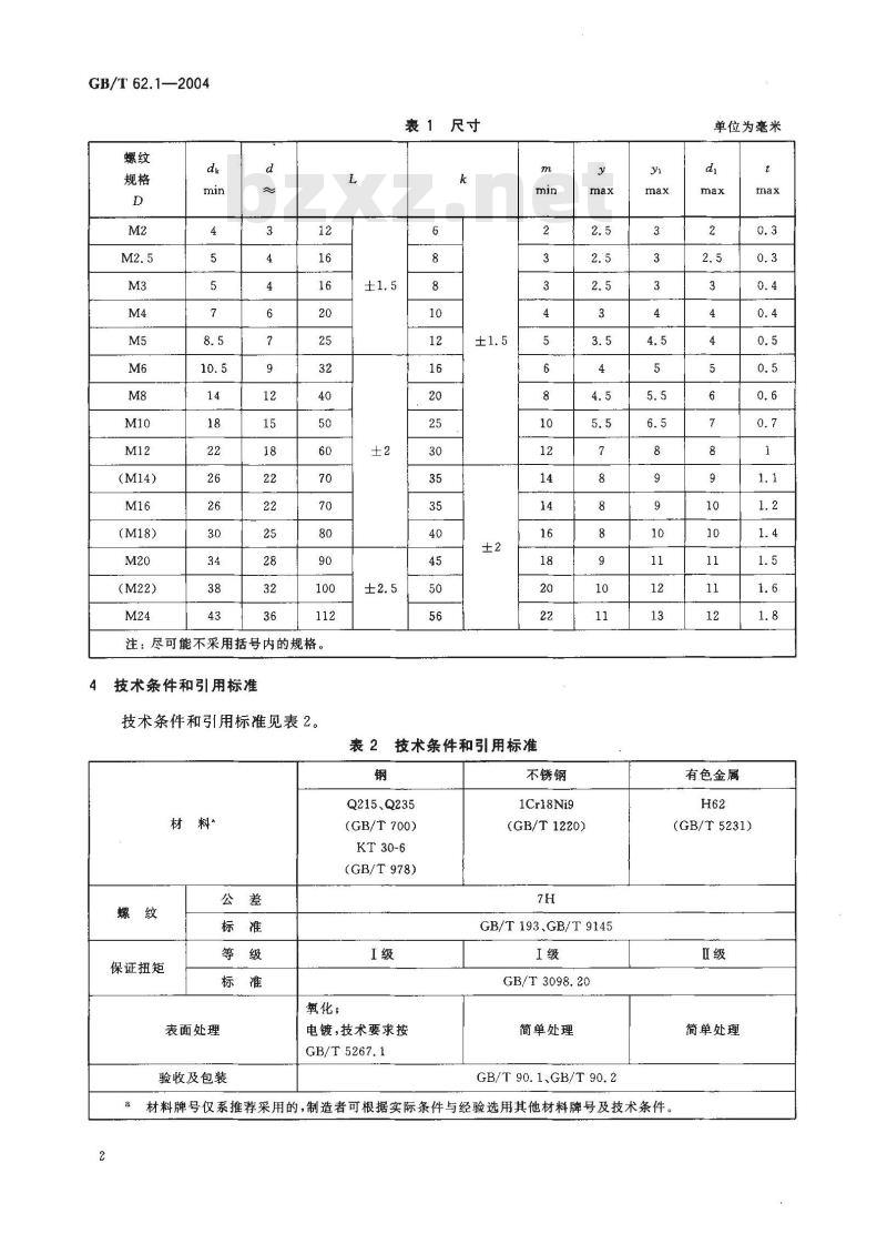 增加不锈钢和黄铜材料,并规定了保证扭矩(见表2)。本部分由中国机械工业联合会提出。本部分由全国紧固件标准化技术委员会(SAC/TC85)归口。本部分由机械科学研究院负责起草。本部分所代替标准的历次版本发布情况为:GB/T 62—1958;
