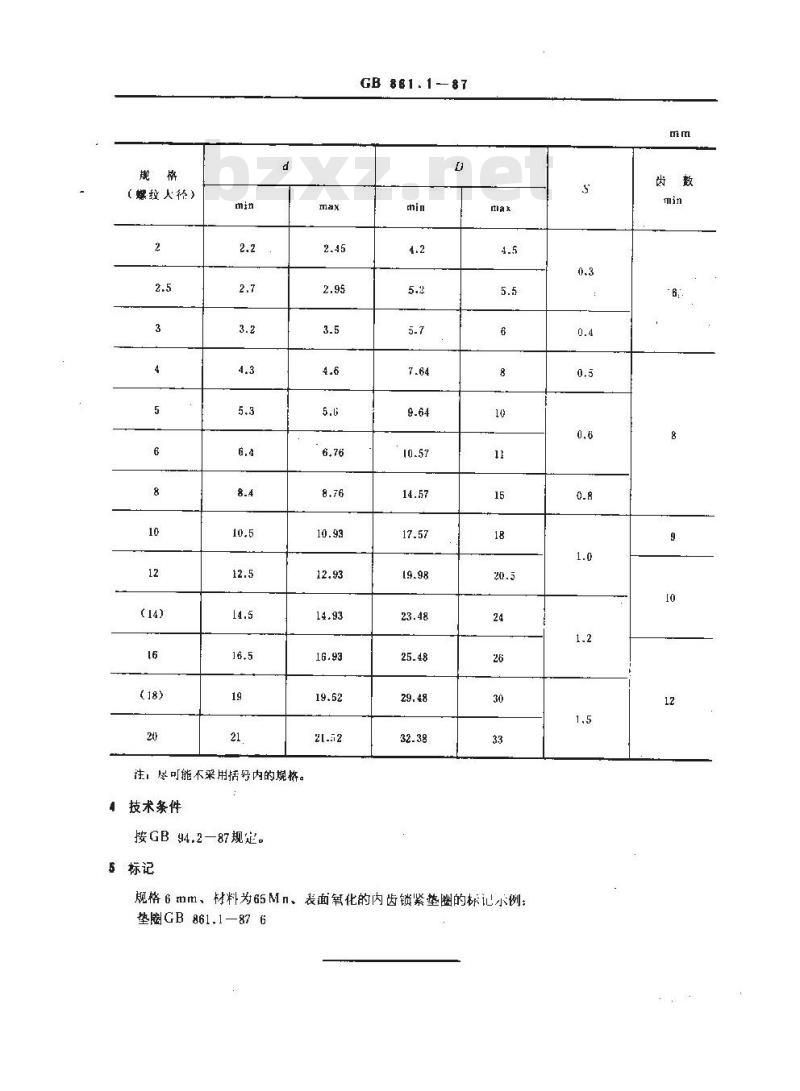 GB 94.2-87《弹性垫圈技术条件齿形、锯齿锁紧垫圈》3尺寸