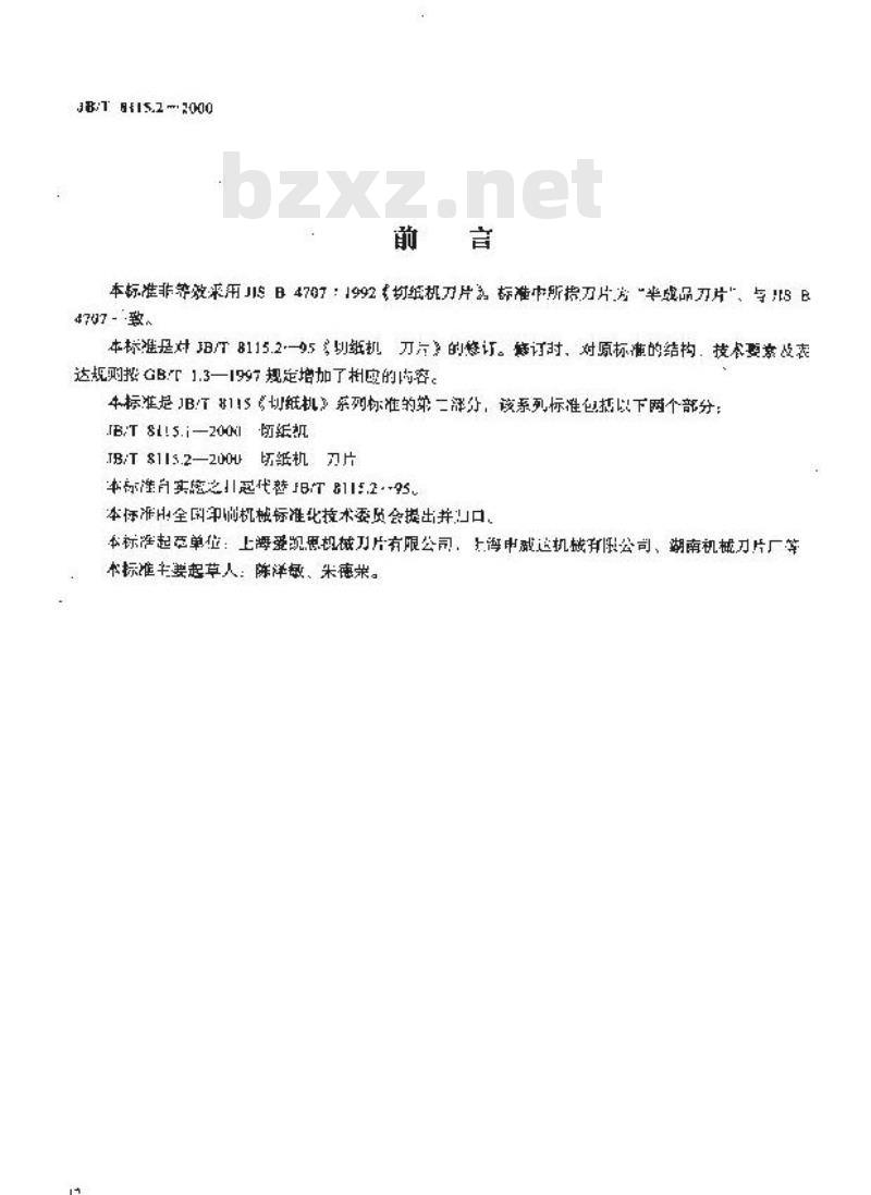 - JB/T 8115.2-2000 切纸机 刀片