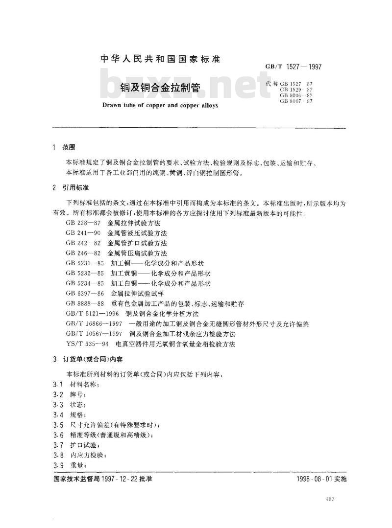 铜及铜合金加工材残余应力检验方法YS/T335-—94电真空器件用无氧铜含氧量金相检验方法3订货单(或合同)内容