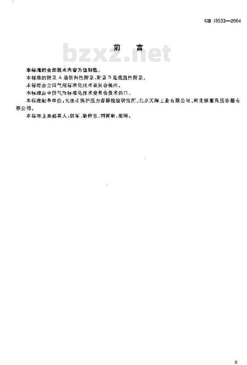 本标准的附录A是资料性附录,泵H是规范性附录,本标雅由全因气瓶标准化技术要员会提出。本标准出全尽气产标准化控术委员会控术归口GB19533—2004