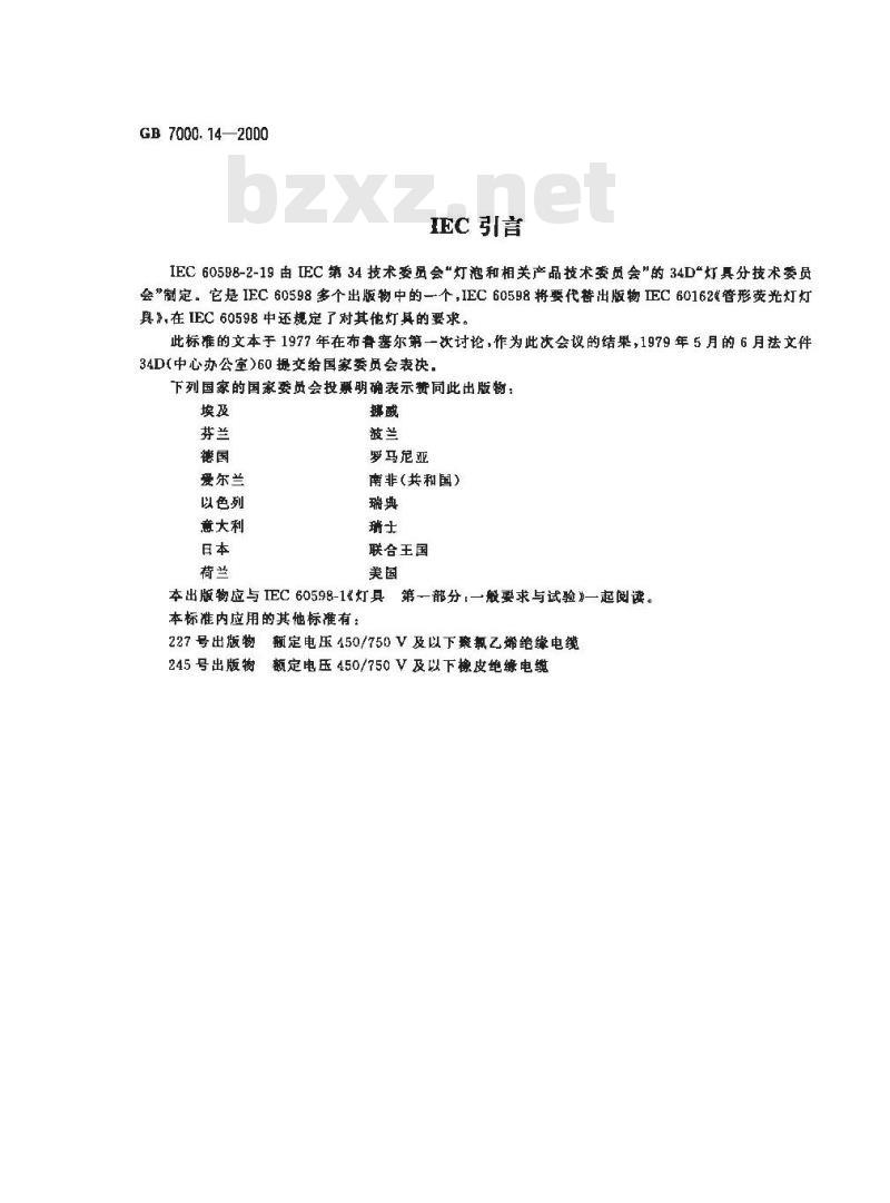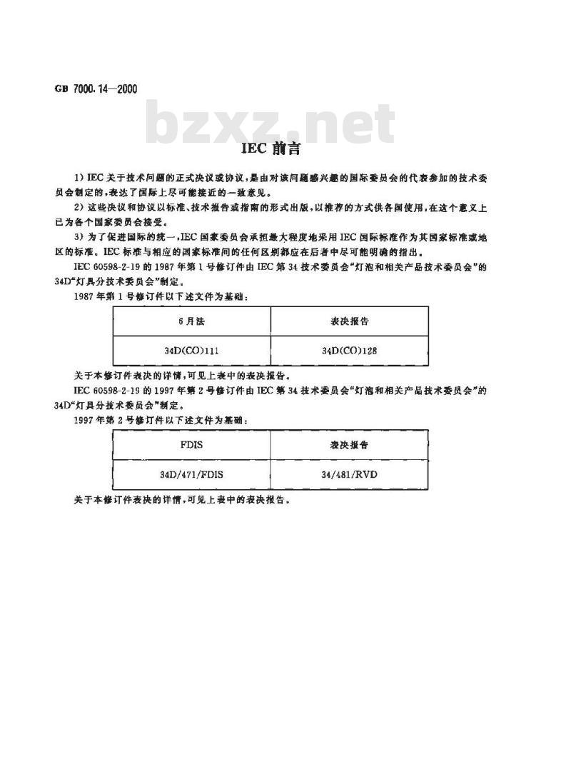 3)为了促进国际的统一,IEC国家委员会承担最大程度地采用IEC国际标准作为其国家标准或地区的标准。IEC标准与相应的国家标准间的任何区别都应在后者中尽可能明确的指出。IEC 60598-2-19 的 1987 年第 1 号订件由 IEC 第 34 技术委员会“灯泡和相关产品技术委员会\的34D\灯具分技术委员会”制定。1987 年第 1 号修订件以下述文件为基础:6月法