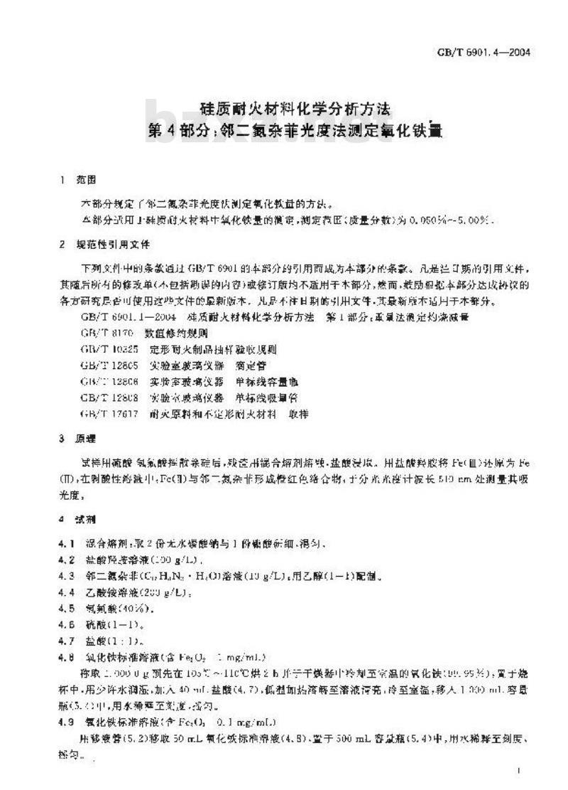 - GB/T 6901.4-2004 质耐火材料化学分析方法 第4部分:邻二氮杂菲光度法 测定氧化铁量