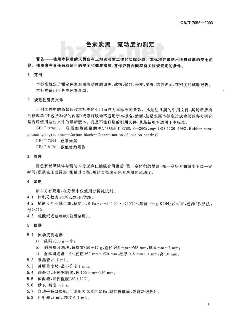 - GB/T 7052-2003 色素炭黑 流动度的测定