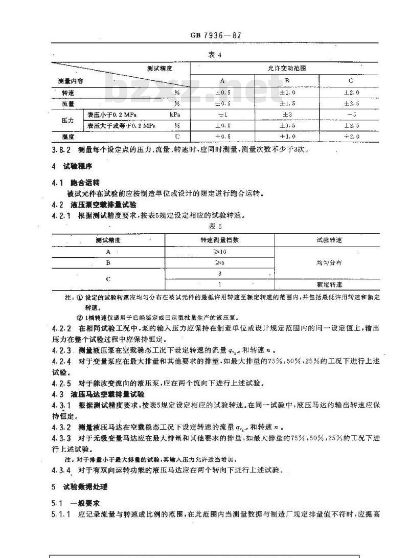 5.1.1应记录流量与转速成比例的范围,在此范围内当测量数据与制造厂规定排量值不符时应提高GB 793687