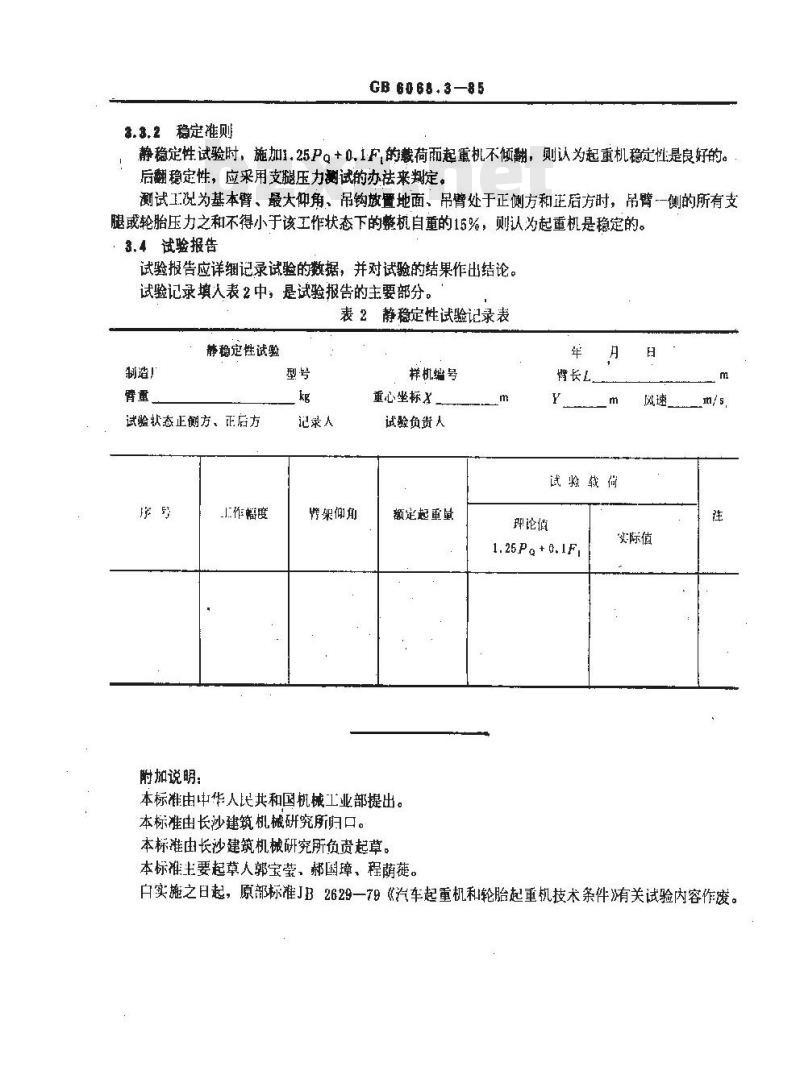 - GB/T 6068.3-1985 汽车起重机和轮胎起重机试验规范 稳定性的确定