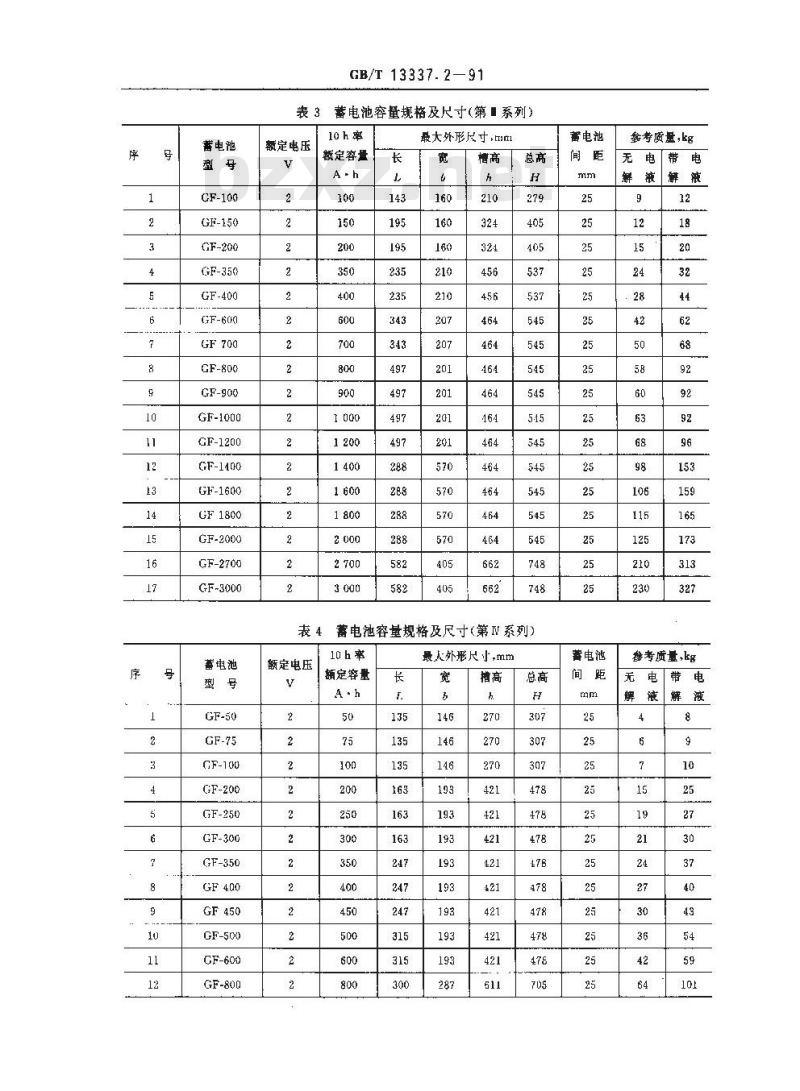 - GB/T 13337.2-1991 固定型防酸式铅酸蓄电池规格尺寸