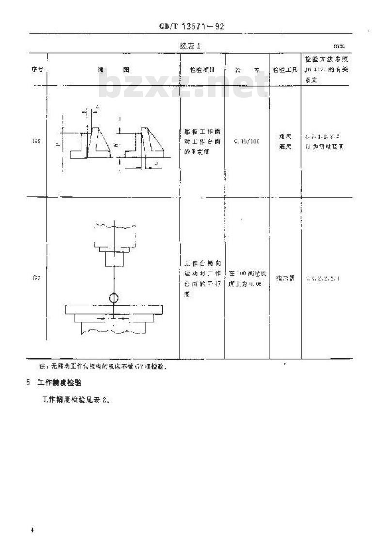 3.2在机床检龄前应拳黑JB4171第3.」条调整好机床的安装水平,将水平仪放置在固定工作心面中部位,其纵向和横向的读数均不应超运100。3.3本标准所列的考度检验项款序、并不表水实际检验次序,为了装标检验工月和检验方便,可按任次序进行检验。