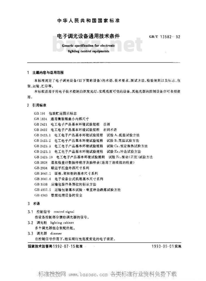 - GB/T 13582-1992 电子调光设备通用技术条件
