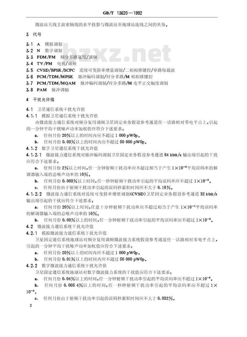 a.任何月份2%以上时间,任一分钟射频干扰功率应不超过相当于产生1×10-6平均误码率的解调器输入端的总噪声功率的10%。b.