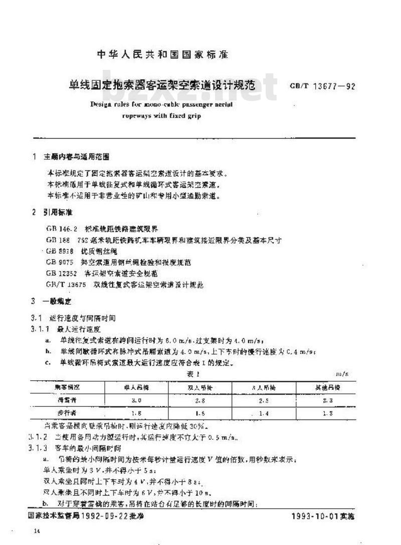 - GB/T 13677-1992 单线固定拖索器客运架空索道设计规范