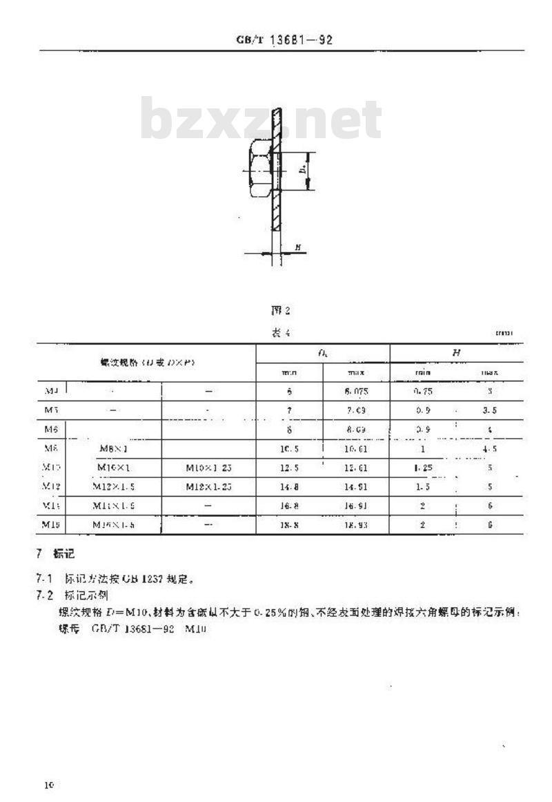 螺纹规格I/=M10,材料为含嵌以不大于心.25%的钢、不经面处理的技六角螺母的标记示例:卡GE/13681-92MI