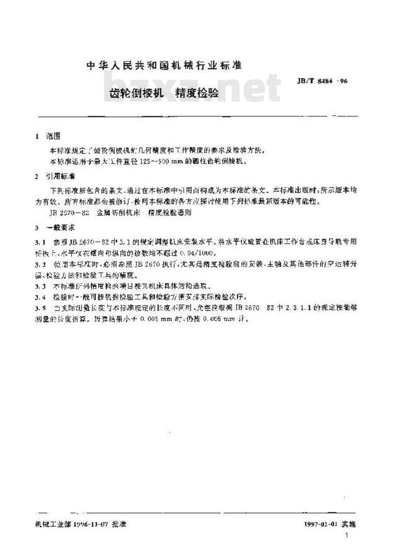 - JB/T 8484-1996 齿轮倒棱机 精度检验