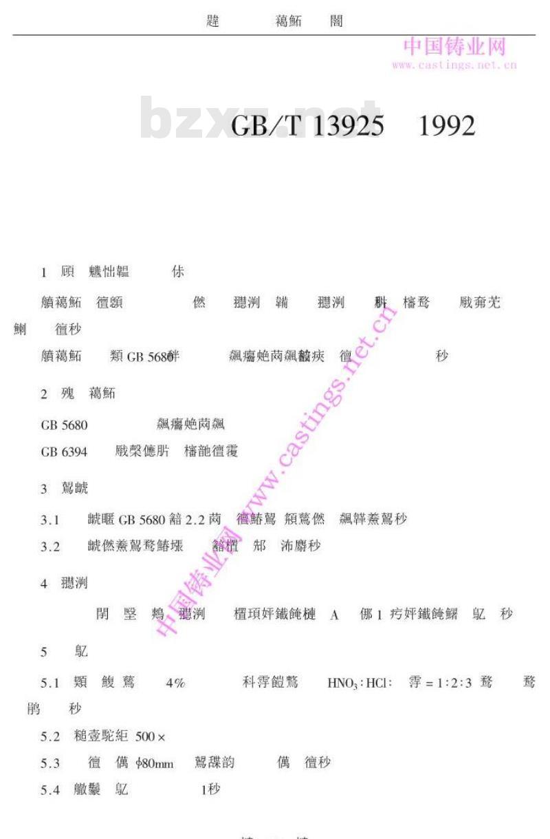 本标准规定了铸造高锰钢在金相显微镜下进行显微组织、晶粒度和非金属夹杂物级别的评定。本标准适用于GB5680《高锰钢铸件技术条件》中所规定的铸造高锰钢。 GB/T 13925-1992 铸造高锰钠金相 GB/T13925-1992