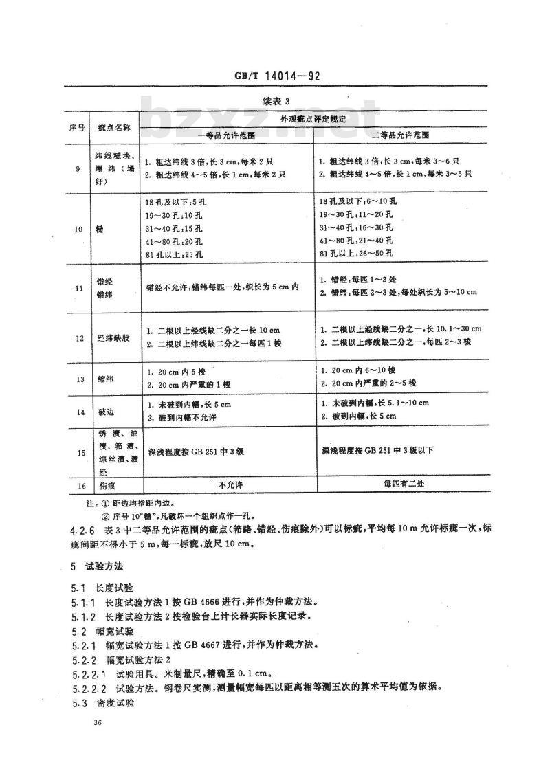 5.1.1长度试验方法1按GB4666进行,并作为仲裁方法。5.1.2长度试验方法2按检验台上计长器实际长度记录。5.2幅宽试验