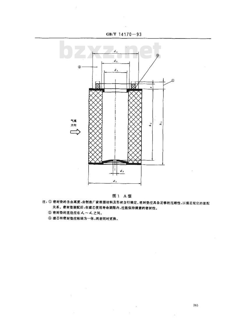 注:①密封垫的自由离,由制造厂家根据材料及形状自行确定。密封垫应具备足够的压缩性,以满足规定的装配关系。密封垫装配后,在滤芯使用寿命期限内,应能保持满意的密封性。②密封垫的直径应在 a,~ds之间。③滤芯和密封垫应粘结为一体,两者同时更换。365