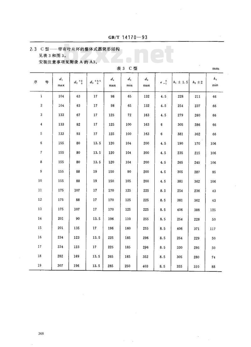 以尺寸d,一155mm,d2=80mm及hz=235mm的带有叶片环的C型滤芯的标记为例:滤芯GB/T14170—C155×80×235以尺寸d,=265mm,d2=153mm及h,=401mm的带有封闭式下端盖的D型滤芯的标记为例:滤芯GB/T14170---D265×153×401371