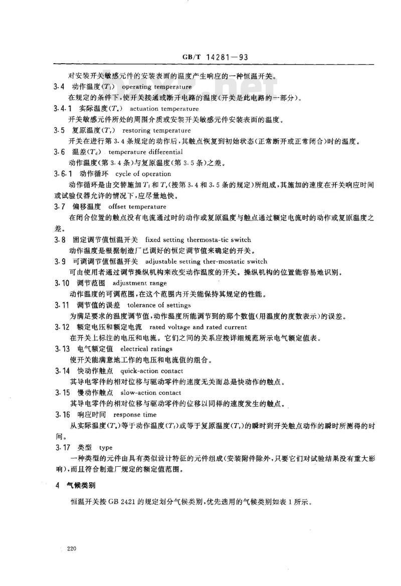 恒温开关按GB2421的规定划分气候类别,优先选用的气候类别如表1所示。220