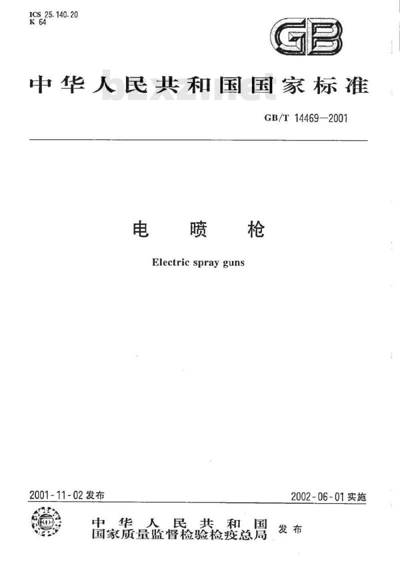 本标准规定了电喷枪的型式、基本参数、技术要求、试验方法和检验规则等GB/T14469-2001