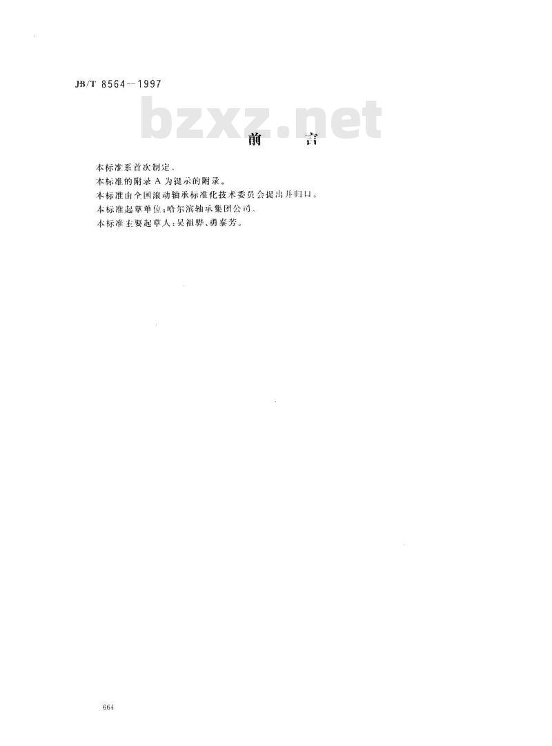 本标准由全国滚动轴承标准化技术委员会提出并归口。本标淮起草单位:哈尔滨轴承集团公司本标准主要起草人:吴礼骅、勇泰芳。664