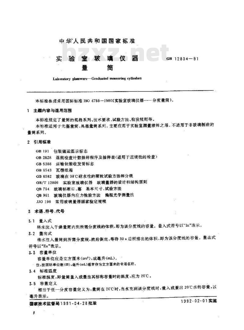 - GB/T 12804-1991 实验室玻璃仪器 量筒