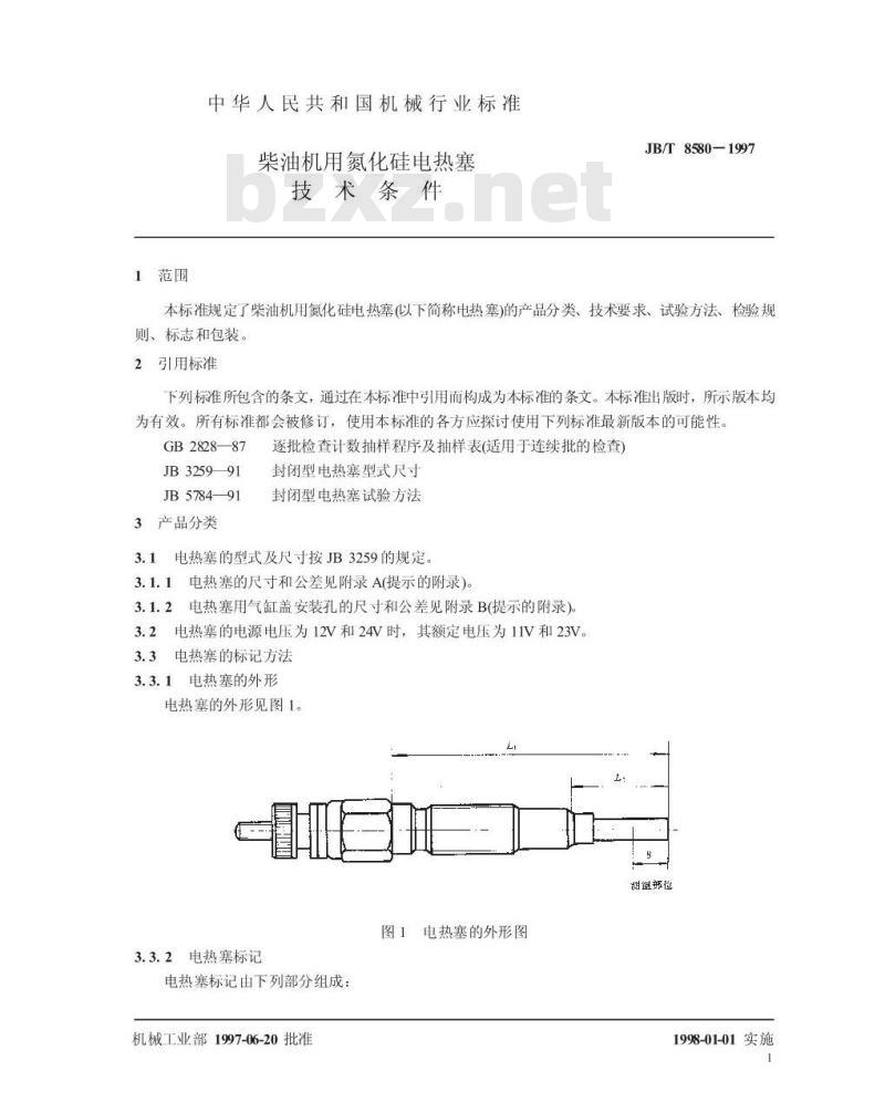 - JB/T 8580-1997 柴油机用氮化硅电热塞 技术条件