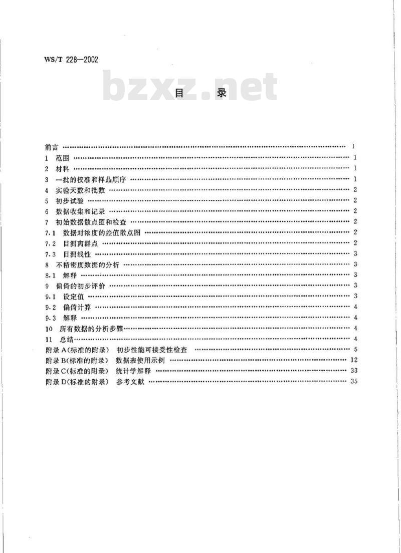 在新方法、新试剂、新仪器用作体外诊断前,常常有必要对它的可接受性做出初步决定。这个初步的方法性能检查,既不是对方法长期性能的严格评价,也不是评价影响设备产生结果的多种因素。本标准的首要目标是有助于发现问题,并要求立即予以纠正,或询问厂商,或作进一步评估。本标准规定了一种对临床检验方法的线性、偏倚、线性漂移、样品交叉污染和精密度作初步评价的方法。在新方法用于检测病人样品前、或者在对方法作任何改进后,必须进行初步评价。这些试验原意是用于自动化仪器的评价,但也可用于试剂盒、手工方法或其他体外诊断设备的评估。只做10例样品的重复实验,通过绘制实验点,作一些简单的计算,即可评价性能特性。使用多线性回归分析统计技术,可进一步获取影响不精密度因素的信息(如样品交叉污染和线性漂移)。因为提供了简单数据分析的说明,所以无需使用计算机。本实验用于仪器性能特性的初步估计,已确定设备最终的可接受性,实验结果仅可确定设备是否具有严重的不可接受性能。标准中简述了所用的材料和方法。此基本实验可能有多方面的改变(如延长实验天数、剔去有问题的样品)。随设备的复杂性、方法的特性和用户的有用资源而改变。 WS/T 228-2002 定量临床检验方法的初步评价 WS/T228-2002