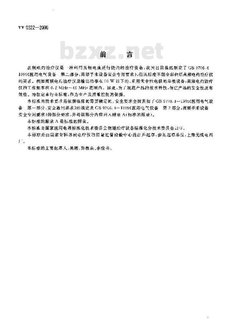 本标准主国家医用电器标准化设术委员公物理治疗设备标准化分技术委员会山口。本标雅日回家有科器忧电疗仅器质射临督控验中心提山严起学,金加起单单位,上净无线电四本标准的工要起草人:昊刚、张数游、李应书:1范围