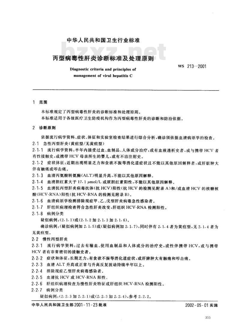 - WS 213-2001 丙型病毒性肝炎诊断标准及处理原则