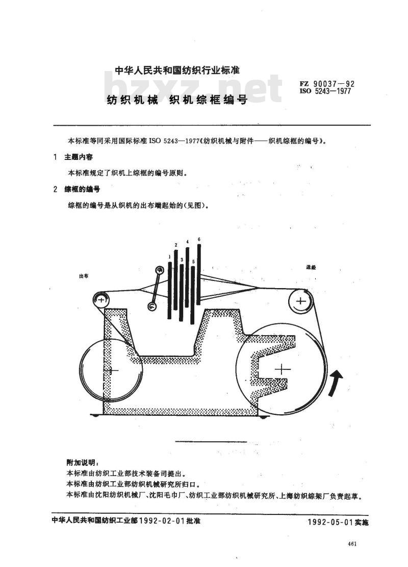 本标准规定了织机上综框的编号原则. FZ/T 90037-1992 纺织机械 织机综框编号 FZ/T90037-1992