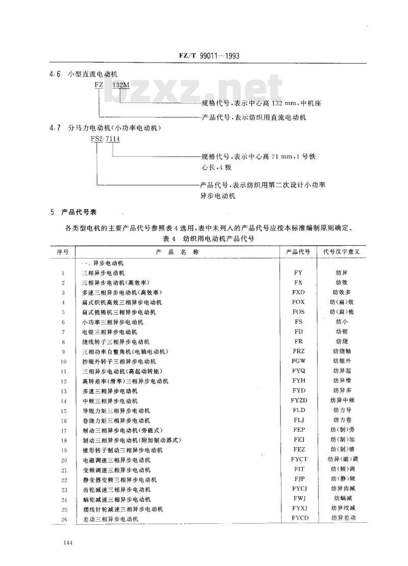 - FZ/T 99011-1993 纺织用电机产品型号的编制方法