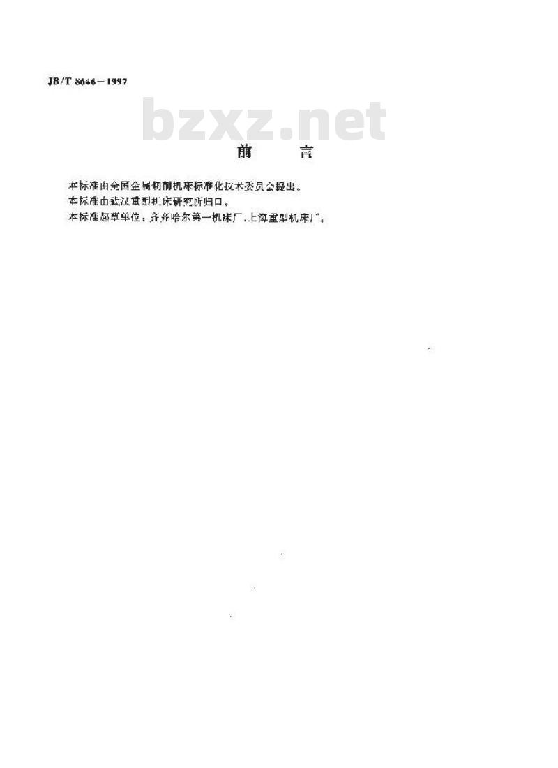 率标准由全国金属切制机床标准化投术委员公提出。本标准由盐汉或型机床研究所归口。本标准起草单位:并齐哈尔第一机床厂.上海重型机床!\范围