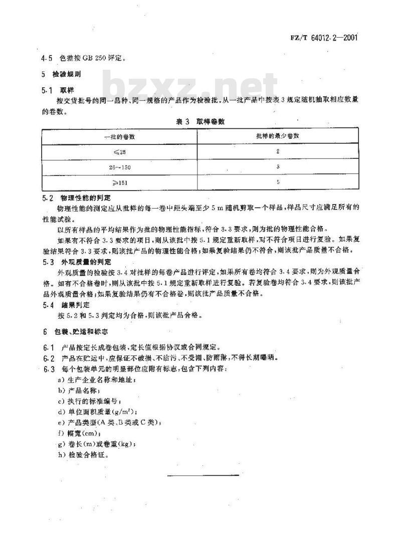 - FZ/T 64012.2-2001 水刺法非织造布 第2部分:卫生用卷材