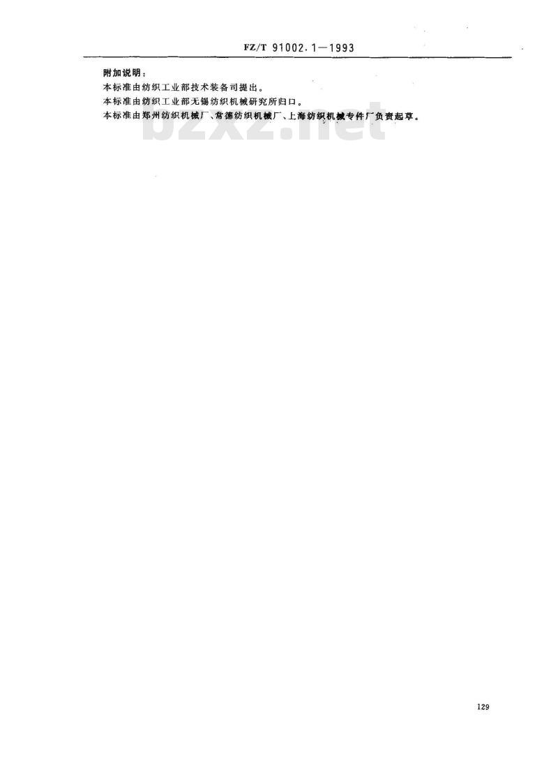 本标准由纺织工业部技术装备司提出。本标准由纺织工业部无锡纺织机械研究所归口。本标准由郑州纺织机械厂、常德纺织机械厂、上海纺织机械专件厂负起草。129