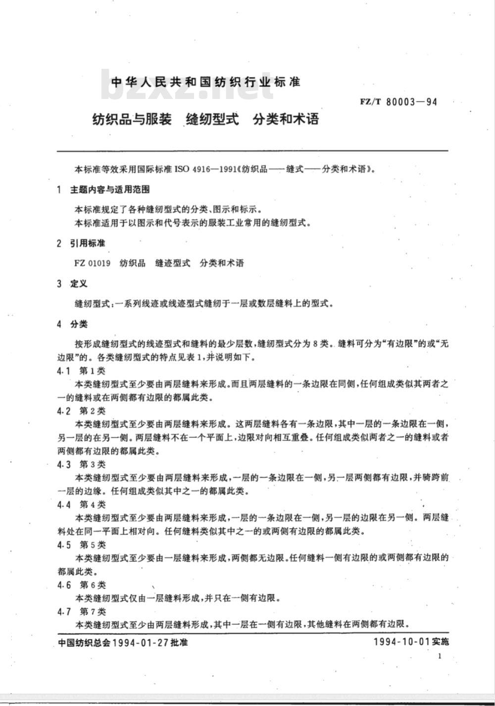 - FZ/T 80003-1994 纺织品与服装缝纫型式分类和术语