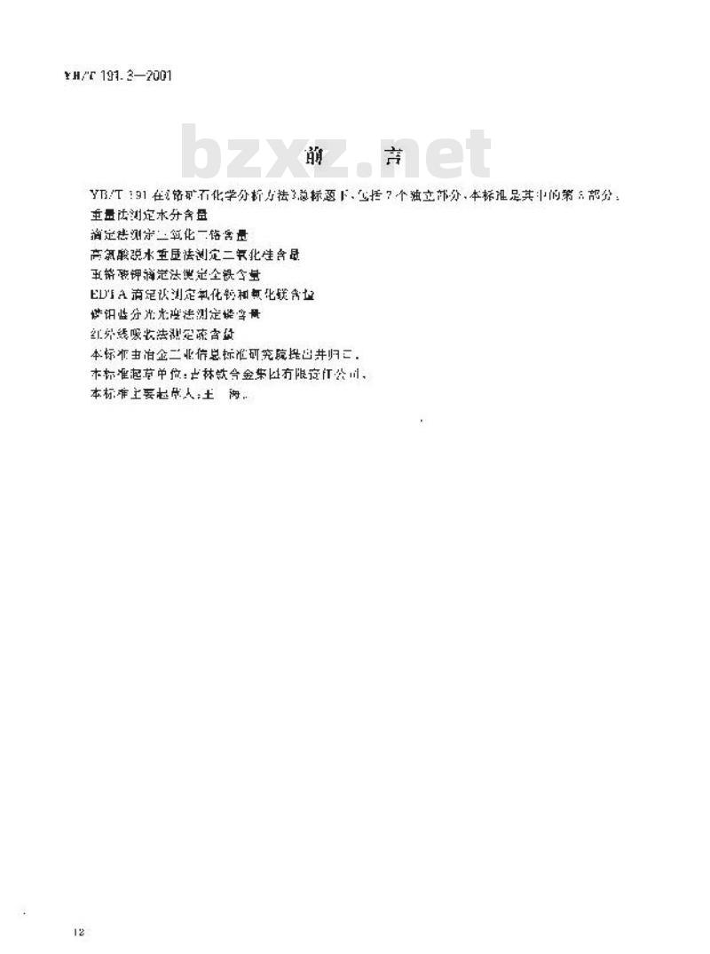 - YB/T191.4-2001 铬矿石化学分析方法 重铬酸钾滴定法测定全铁含量