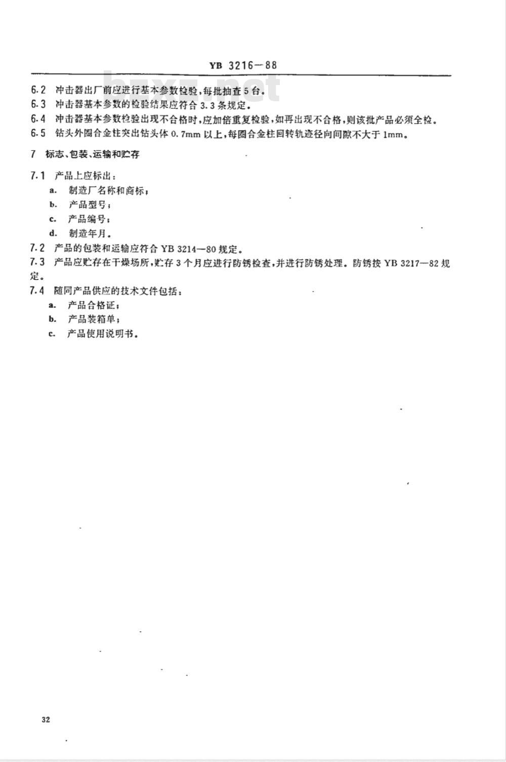 6.-1冲击器须经制造厂技术检验部门检验合格后方能出厂,并附有证明冲击器质量合格的文件。31