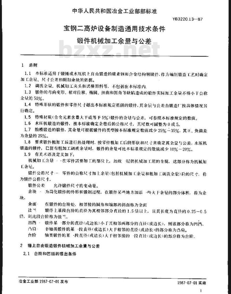 - YB/T 3220.13-1987 宝钢二高炉设备制造通用技术条件 锻件机械加工余量与公差