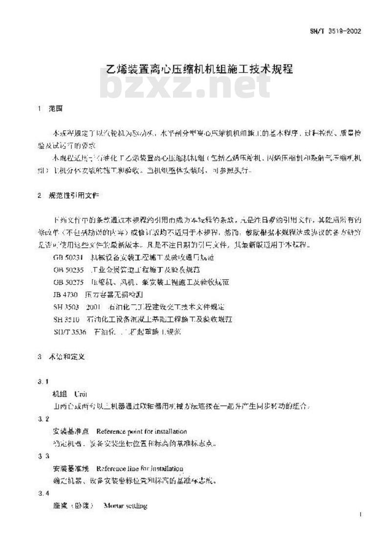 - SH/T 3519-2002 乙烯装置离心压缩机机组施工技术规程