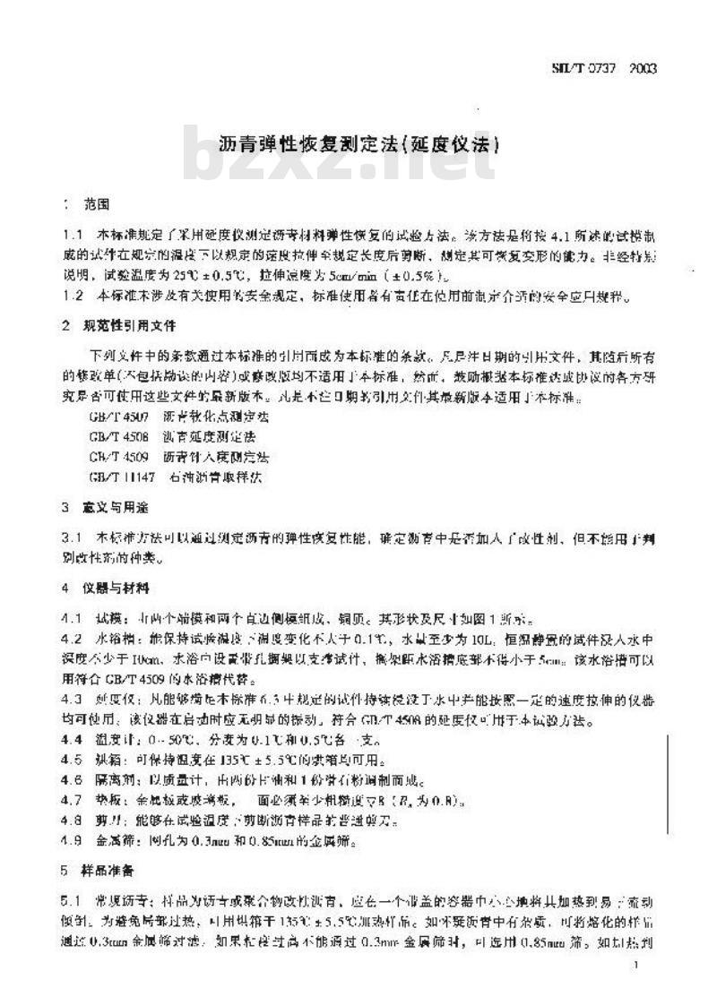 - SH/T 0737-2003 沥青弹性恢复测定法(延度仪法)