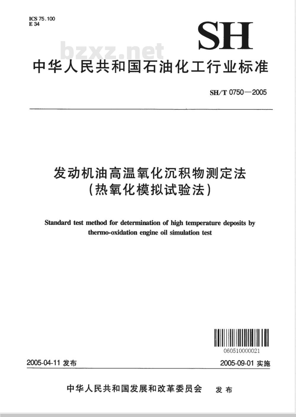 - SH/T 0750-2005 发动机油高温氧化沉积物测定法(热氧化模拟试验法)
