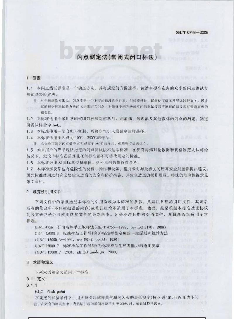 - SH/T 0768-2005 闪点测定法(常闭式闭口杯法)