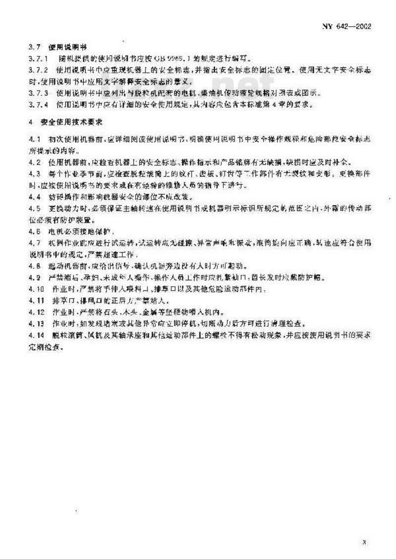 - NY 642-2002 脱粒机安全技术要求