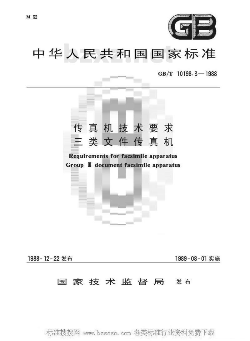 - GB/T 10198.3-1988 传真机技术要求 三类文件传真机