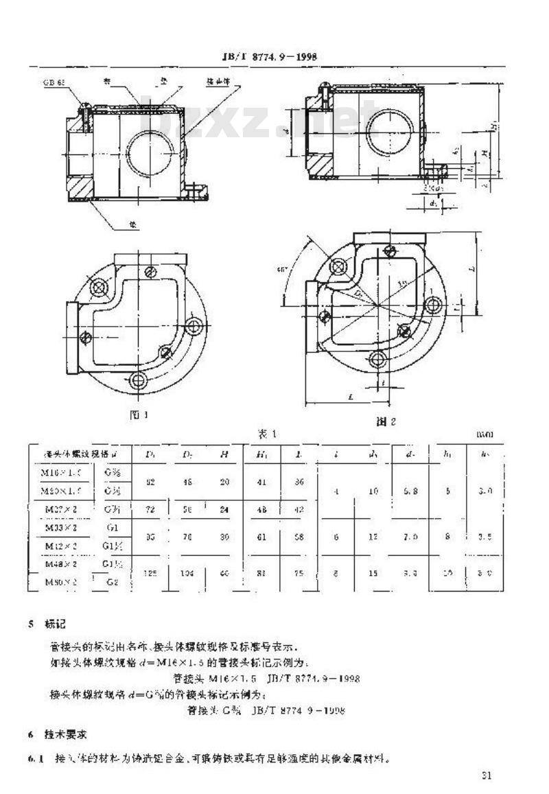 管接头的标出名许、据头体操较规格及标准号去示:虾接头体爆纹规格d=M1×1.5的接头标记示例为+