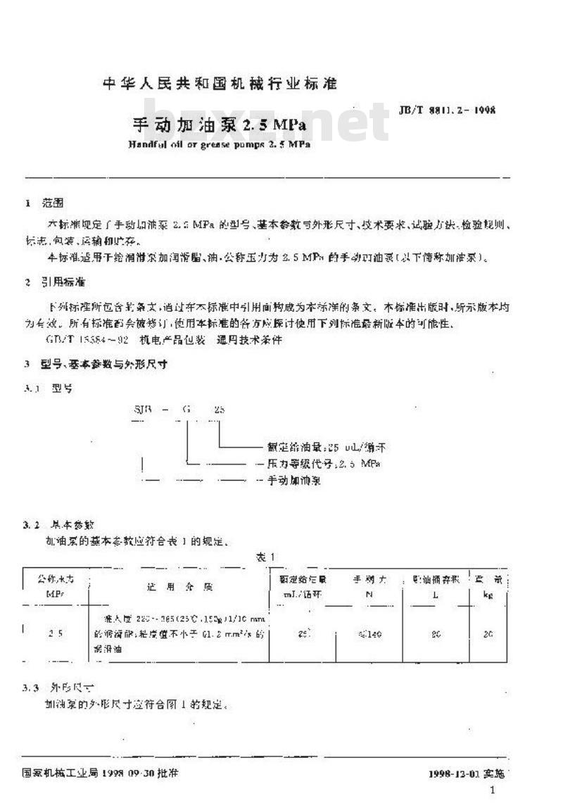 - JB/T 8811.2-1998 手动加油泵 2.5MPa