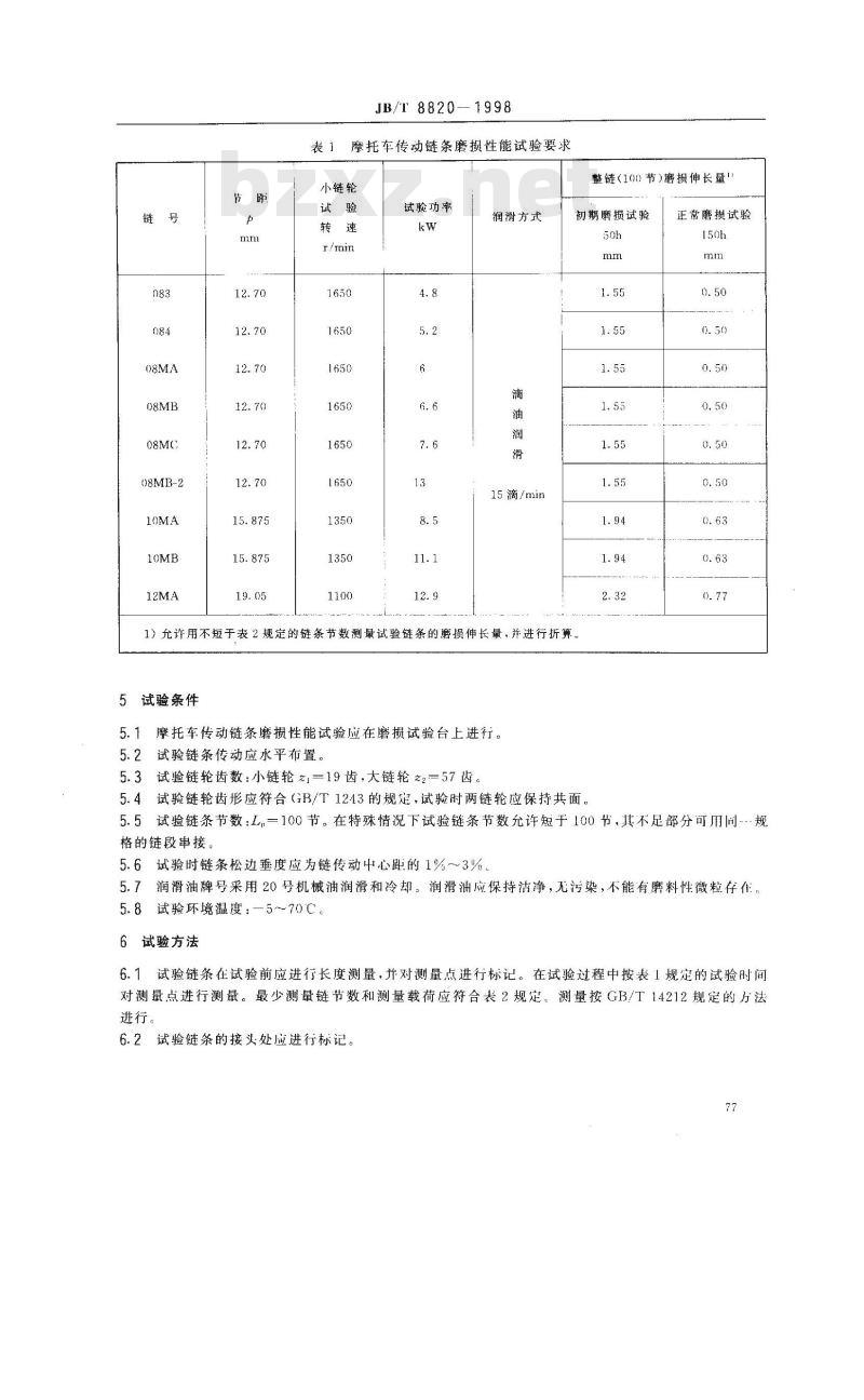 - JB/T 8820-1998 摩托车传动链条磨损性能试验规范